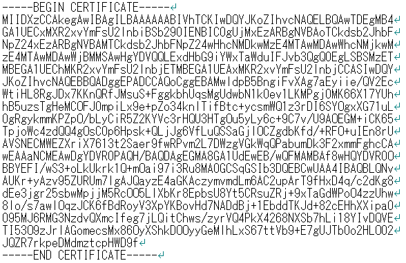 上のテキストをメモ帳に貼り付け「GlobalSignRootCA_R3.pem」のファイル名で保存してください。そのファイルを